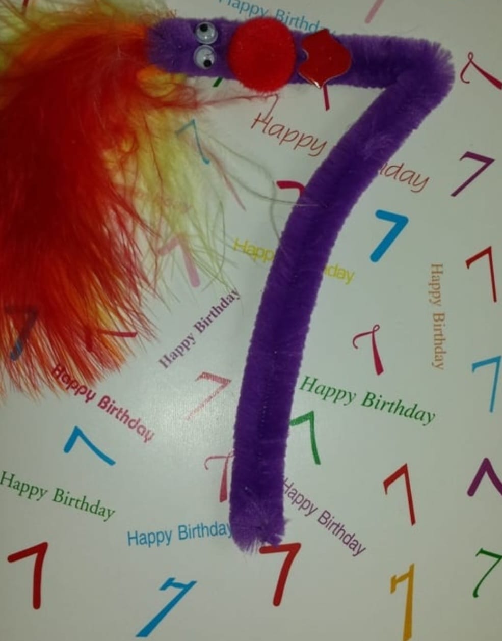This 7th age birthday card will put a smile on any nine-year-old’s face. This is an age card for a boy or a girl for a 7th Birthday greeting card. Please note that the embellishment on each card can be of a different colour from the image shown. This is a standard 13 Cm x 17 Cm card. Each card is cello wrapped individually and has a complementary envelope.